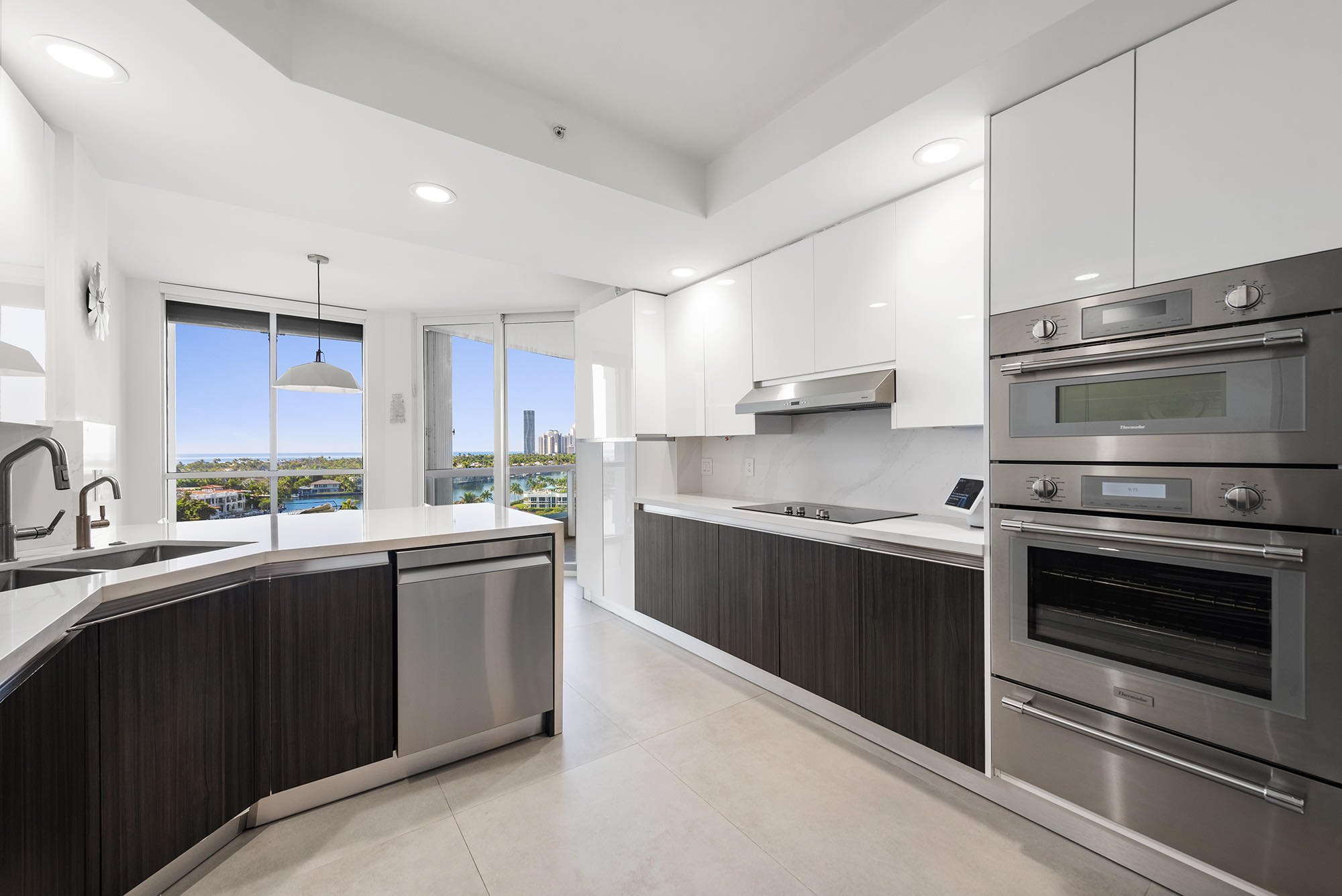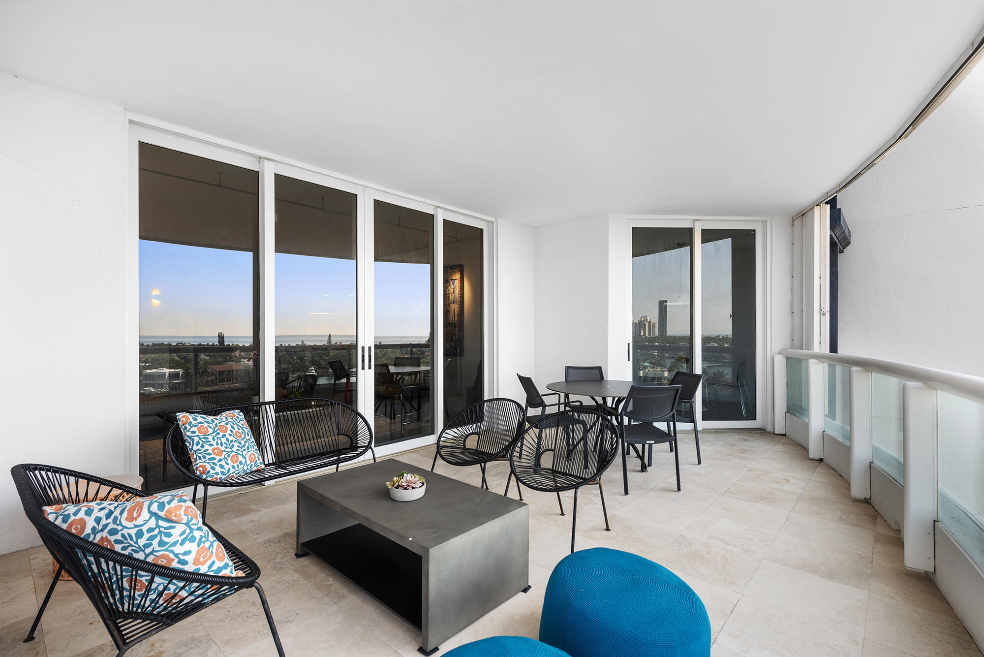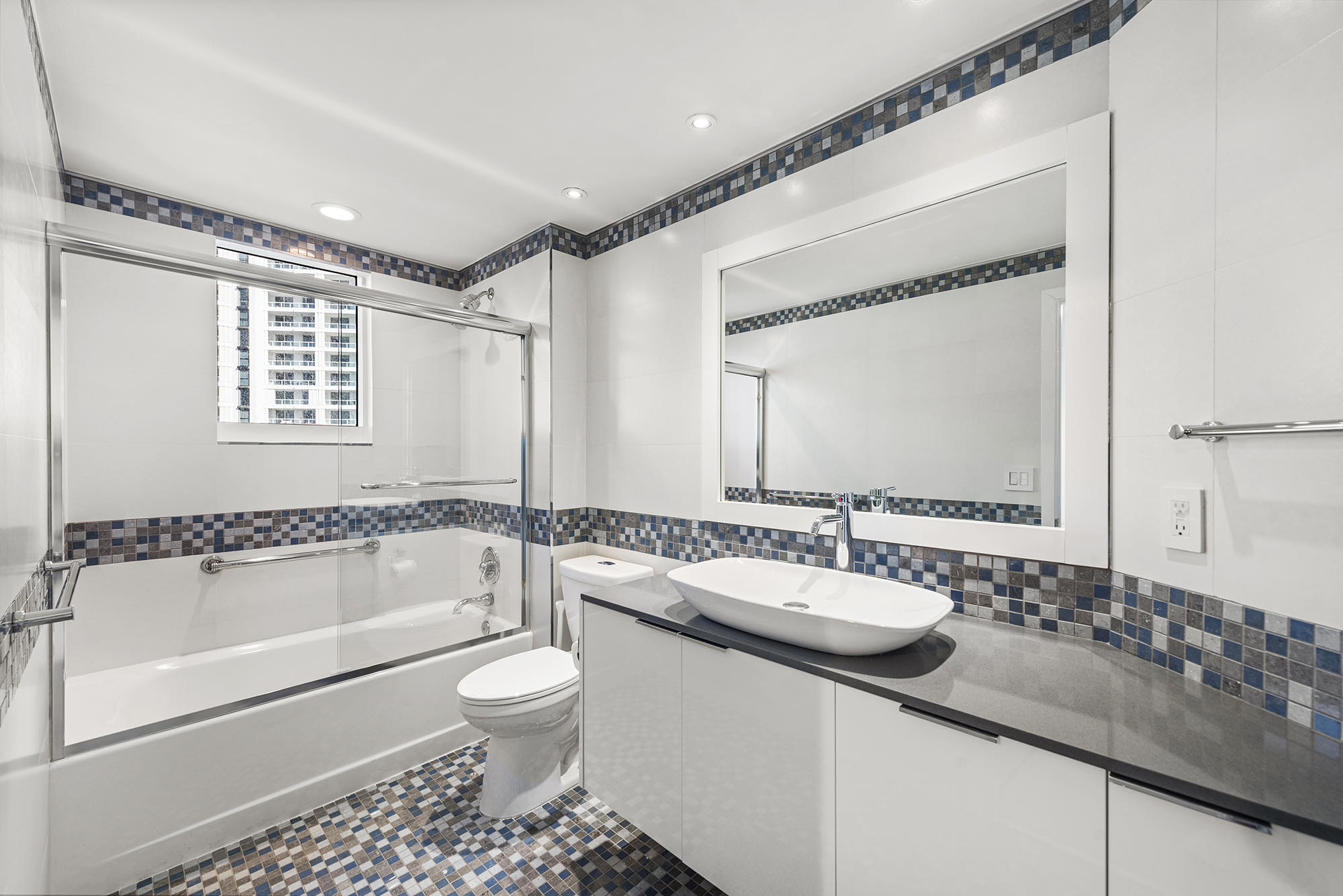 Located in the prestigious Atlantic III, this luxurious apartment offers breathtaking water views and exceptional comfort. It features 3 spacious rooms - one currently used as an office, two full baths, and a half bath. The master suite is a private sanctuary with high-end electronic blinds and walk-in closet, complemented by elegant non-electronic blinds throughout. Polished porcelain floors run seamlessly across the living spaces. The master bathroom, crafted from premium travertine, and the mosaic-tiled second bath add sophisticated touches. Residents enjoy world-class amenities such as a billiard room, private aerobics, a movie theater, valet service, 24-hour concierge, security, a library, and a fully equipped gym—perfect for a refined, convenient lifestyle.
